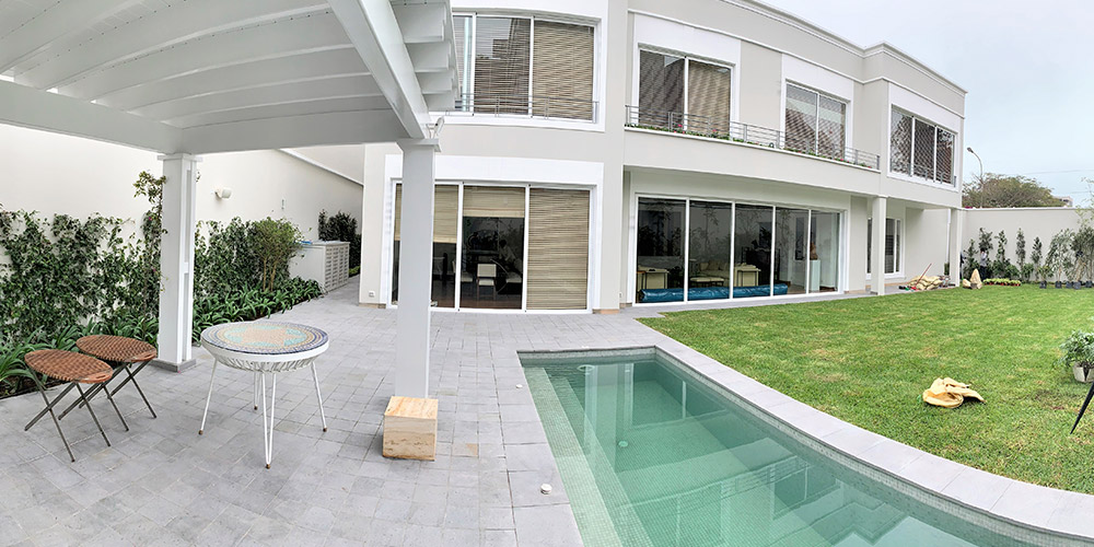 Obras civiles e instalaciones en residencia de 750 m2, tres pisos más sótano. Losas macizas, vigas postensadas, climatización (frío-calor), gas GLP, grupo electrógeno, ascensor, sistema de bombeo a presión constante, piscina, sauna, jacuzzi, etc.