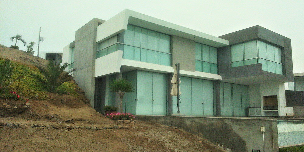 Construcción de residencia en playa “Misterio” Km 117 Panamericana Sur. Cimentaciones aisladas y combinadas, estructura de concreto armado, tabiques de albañilería, revoques, contra pisos, pisos cerámicos y porcelanatos, enchape cerámico de muros, vidrios templados, revestimientos en micro cemento, carpintería de madera y aluminio, pintura.