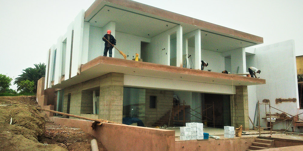 Construcción de residencia en playa “Misterio” Km 117 Panamericana Sur. Demolición de roca, cimentaciones aisladas y combinadas, estructura de concreto armado, tabiques de albañilería , revoques, contra pisos , pisos cerámicos y porcelanatos , enchape cerámico de muros, vidrios templados, revestimientos en micro cemento, carpintería de madera y aluminio, pintura.