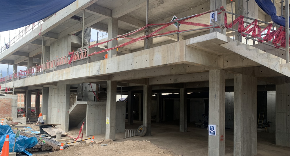 Construcción de almacenes en 2,800m2 y 12m de altura al hombro. Mezzanine en 6m de altura para 1,200m2 con losas pre fabricadas. Paredes de bloquetas de concreto. Estructuras para montacargas y..